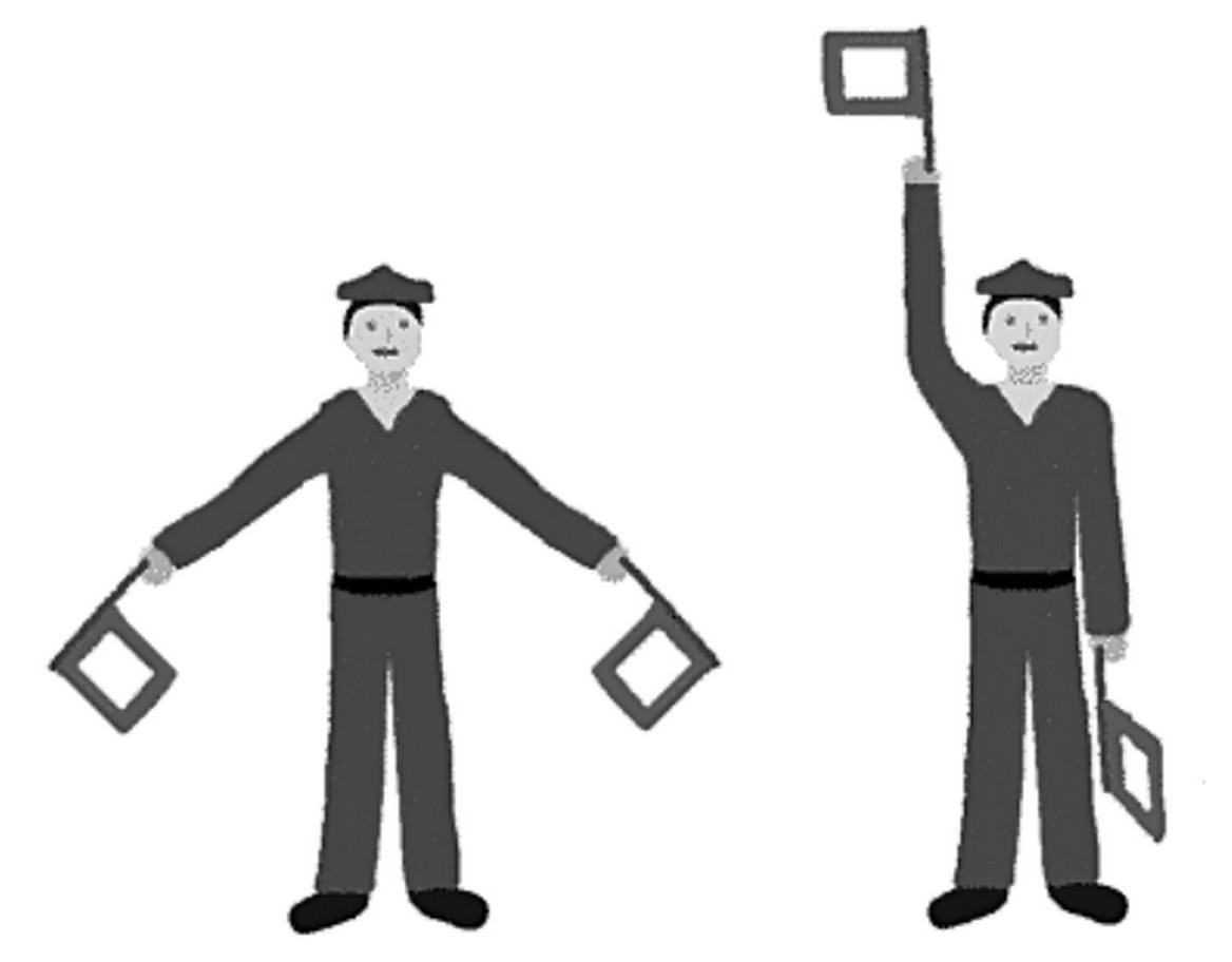 | The false peace symbol was first used in 1958. It was designed that year by British artist Gerald Herbert Holtom. He wanted to create a symbol for nuclear disarmament by taking the letters N and D from the so-called ' semaphore alphabet'. | Erstmals wurde das falsche Friedenssymbol im Jahr 1958 verwendet. In diesem Jahr wurde es vom britischen Künstler Gerald Herbert Holtom entworfen. Er wollte hiermit ein Symbol für nukleare Abrüstung schaffen, indem er aus dem sogenannten ‹Winkeralphabet› die Buchstaben N und D nahm. |